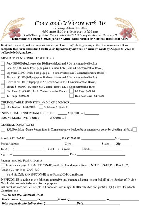 Society of Divine Word (see attached flyer for details). By celebrating our Treasures of the Past and